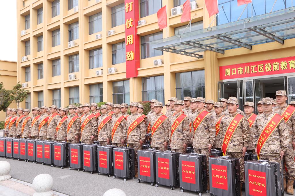 3月14日上午,副校长王隼带队前往周口市军分区民兵训练基地,参加2025年春季大学生应征入伍欢送仪式。学校武装部、学生处负责人及相关工作人员参加仪式。