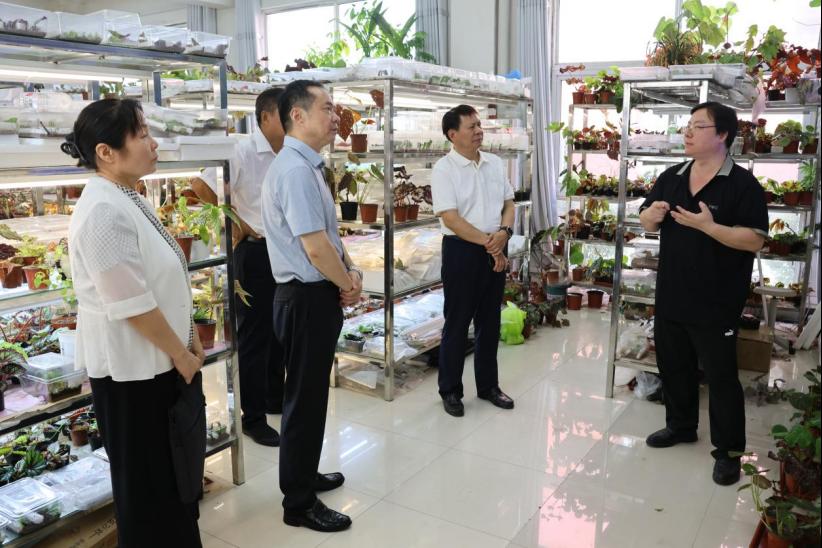 调研组一行实地走访学校植物新型快繁技术研发中心、智慧物流虚拟仿真实训基地、纺织服装实训室等场所,详细询问学校产教融合、人才培养等相关情况。在植物新型快繁技术研发中心考察时,程若光对该项技术给予高度评价,认为其具有重要的理论研究价值和巨大的市场应用前景。