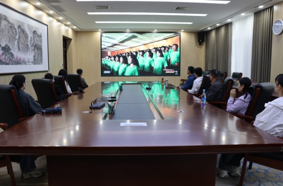 全体在周校领导与各党政群团、教辅部门干部教师在艺术演播厅集中收听收看