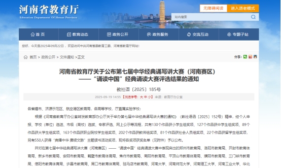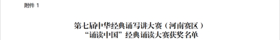 近日,河南省教育厅公布第七届中华经典诵写讲大赛(河南赛区)“诵读中国”经典诵读大赛评选结果。我校五年制大专部学生李梦绘、张一笑在教师库明华、吴钰琼的精心指导下分别荣获职业院校组一等奖、二等奖,其中李梦绘同学作为职业院校组代表入围国赛复赛并入围国赛决赛。