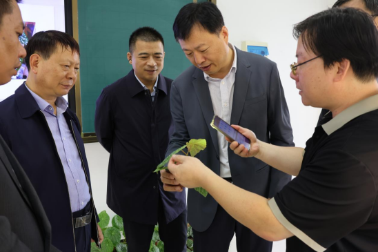 调研组一行实地考察了我校植物新型快繁中心,详细了解其研发历程、技术特点和实际应用情况。王献超对该项技术给予高度评价,认为这项技术对提升农业产业效益、推动农业现代化具有重要意义,希望加快技术推广应用步伐。