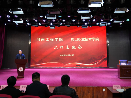 10月13日下午,河南工程学院与周口职业技术学院在开元校区艺术演播厅召开工作交流会。河南工程学院纺织工程学院院长曹机良、周口职业技术学院副校长于爱霞出席,双方相关负责同志及师生代表参加。活动由纺织服装学院院长高岐奎主持。