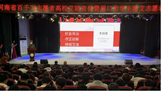 11月4日,河南省2025年高校艾防宣讲艺术巡展暨周口市学生防艾志愿者技能培训活动在周口职业技术学院开元校区砺德厅举行。周口市卫健委、周口市疾控中心、周口职业技术学院等相关负责同志,防艾骨干志愿者及学校1000余名师生参加。