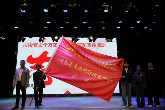 市疾控中心艾防二科科长姚明春为志愿者代表授旗。