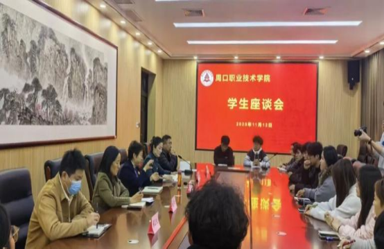 为倾听学生心声,提升管理服务效能,优化育人服务体系,11月12日,周口职业技术学院三个校区同时召开学生座谈会。校领导李明臣、李秀萍、王隼出席,学校相关职能部门负责人及来自各教学院(部)的学生代表参加。