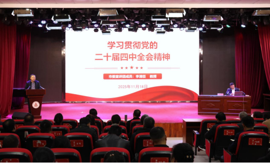 李清臣结合学校实际,围绕学习贯彻习近平总书记在党的二十届四中全会上的重要讲话精神和全会《建议》,从深刻认识党的二十届四中全会的重大意义,准确把握“十五五”时期在基本实现社会主义现代化进程中的重要地位,深刻领会“十五五”时期经济社会发展的指导方针和主要目标,全面理解“十五五”时期经济社会发展的战略任务和重大举措,坚持和加强党的全面领导,凝聚起推进中国式现代化的磅礴力量等方面,对全会精神作了全面宣讲和系统阐释。