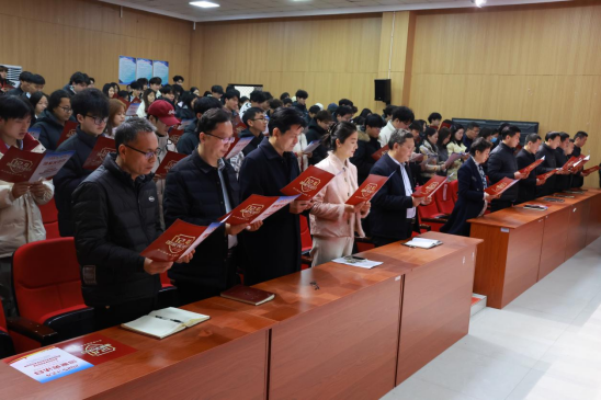 在第十二个国家宪法日到来之际,为深入学习贯彻党的二十届四中全会精神,认真贯彻习近平法治思想,进一步弘扬宪法精神、维护宪法权威、增强法治观念、普及宪法知识,12月4日上午,我校在开元校区艺术演播厅设置分会场,通过收看直播的形式参与2025年国家宪法日“宪法晨读”活动。校领导李明臣、李秀萍,相关职能部门负责人,各二级院(部)党总支书记、学管副院长及200余名师生代表在分会场参加活动,全校万余名师生分班级开展国家“宪法晨读”活动。