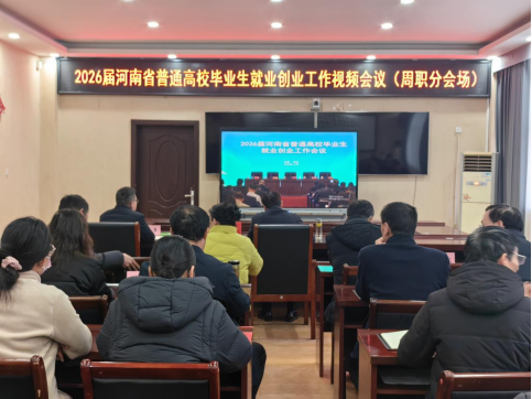 12月19日下午,2026届河南省普通高校毕业生就业创业工作视频会议在省大学生就业创业综合服务基地主会场召开,我校在开元校区第三会议室设立分会场。校长李清臣、副校长王隼,各二级学院(部)党总支书记、就业指导员、全体2026届毕业班辅导员及招生就业处就业创业工作人员参会。
