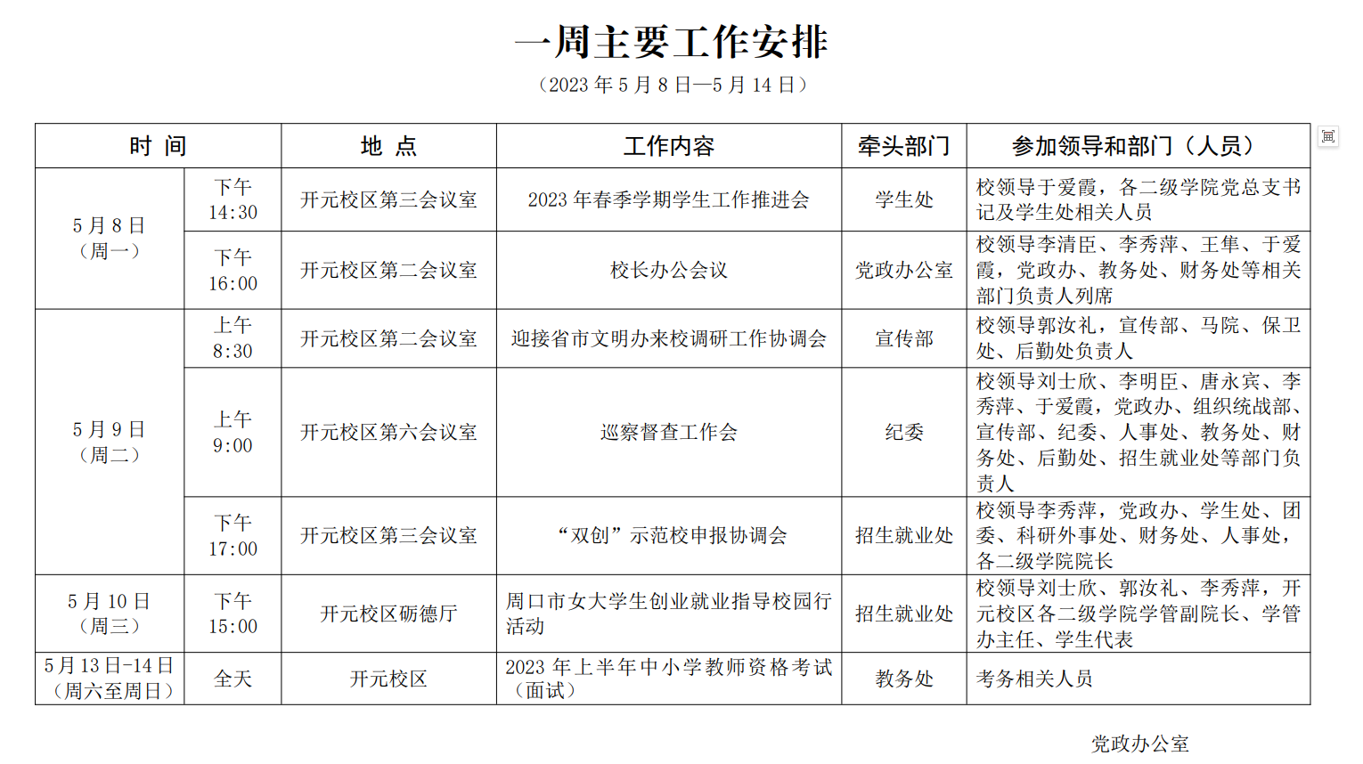 一周主要工作安排(2023年5月8日—5月14日)