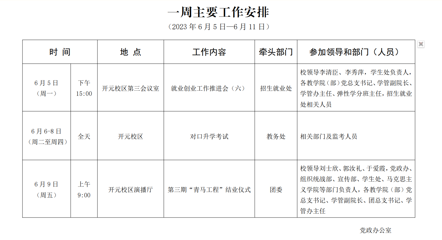 一周主要工作安排(2023年6月5日-6月11日)