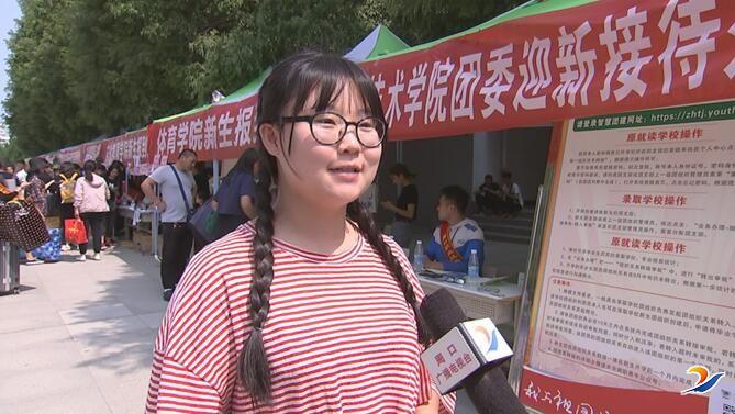 内蒙古籍新生杨丽圆:“学姐学长们都特别热心,从一进校门就帮提行李安排宿舍 还有就是办手续什么的都特别快,很舒心。”