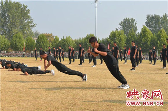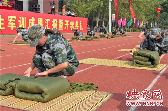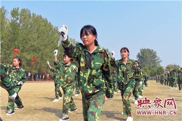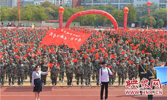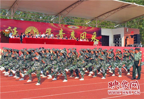 庄严嘹亮的国歌过后,该校新生千人方队不断变换队形,依次展现汉字及数字字形倒计时,最后摆出“ 不忘初心、牢记使命”字形,整齐划一,让人震撼。军训汇演时,军旗护卫队护卫国旗引领三个校区共43个方阵逐一走过主席台,接受检阅。该校七千余名来自五湖四海的新生,个个精神抖擞、士气高涨,迈着整齐标准的步伐、喊着响亮豪迈的口号,以良好的精神风貌展现出了军训的丰硕成果。