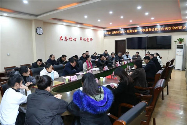 河南省《诚信校园行》短剧大赛一等奖获得者载誉而归来欢迎座谈会