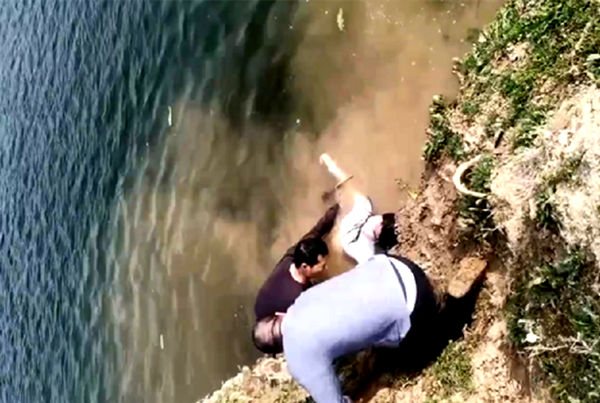 在河里返程时,房玉翔体力逐渐不支,大概离岸边五米多的地方他已精疲力尽,岸边水更深些,至少三四米。当时女的一直在喝水,并还有些微弱意识,会些水性,慌乱中将外衣脱去减轻重量,然后两人抓着、扶着用省力气的仰游艰难游回岸边。、