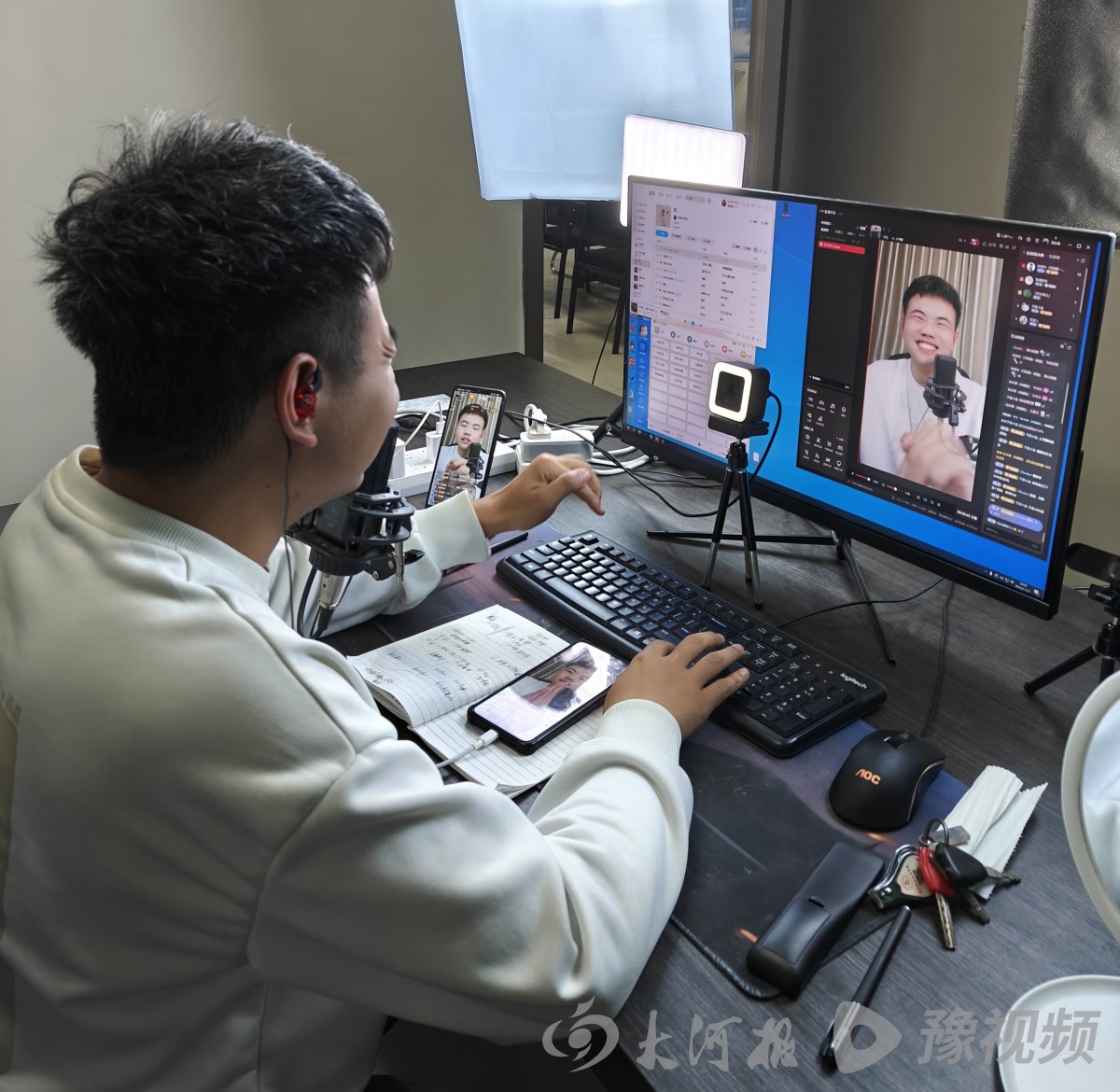 大河报·豫视频记者在采访中注意到,别看这些年轻的大学生们才读大二,但是在专业理论的涵养之下,大家把直播和短视频拍摄已经玩得很“溜”了。实训中,有打光的、有拍摄的、有讲解的,分工明确、配合默契,俨然是正式工作的成熟团队。