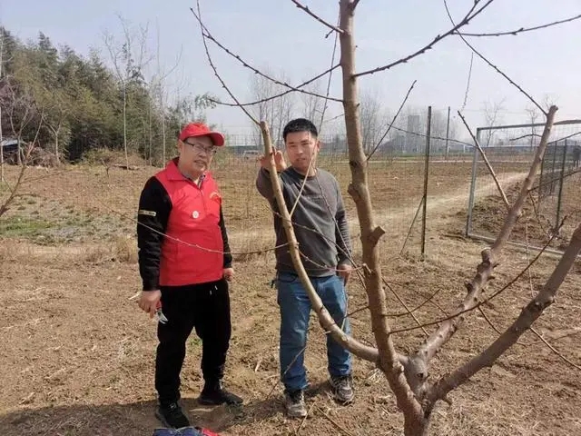 在桃园里,王尚堃用“火眼金睛”对桃树进行着精准诊断,同时用剪刀开展“外科手术式”修剪。“桃树的部分枝条冬剪时处理不到位,存在徒长枝、留撅等问题,还有个别桃树枝条过密......”王尚堃的直击问题让李宗吕很是服气。“我平时从书本上、抖音上也没少学,看来还是没有学到整枝打杈的精髓!”李宗吕说。