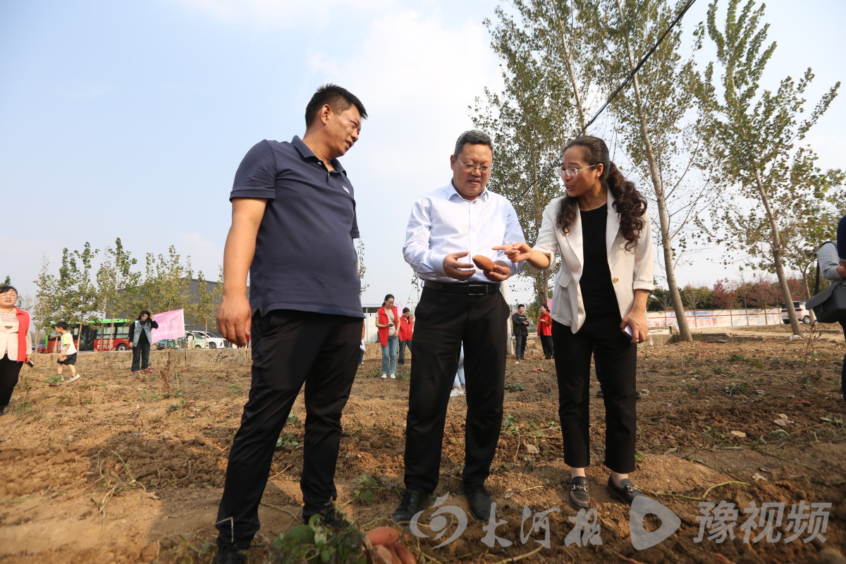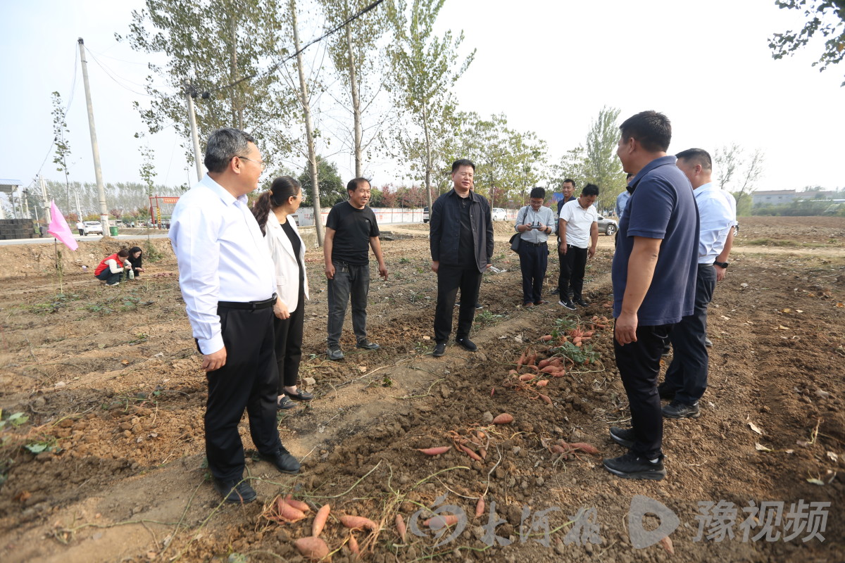 同学们在蜜薯地里上课时,正巧碰上前去调研的县、镇领导。商水县委常委、宣传部长、副县长王建党现场观看了大学生们助农直播后,为同学们的专注和热情点赞加油,也为周口职业技术学院开展助农实训课表示欢迎。