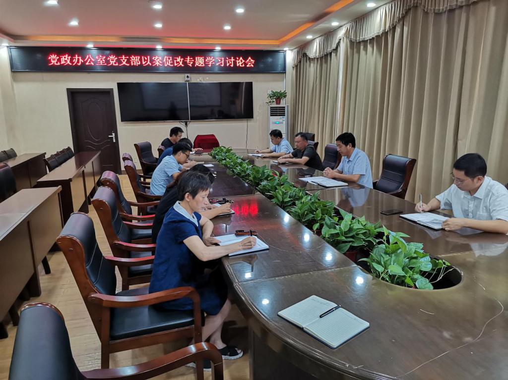8月27日上午,党政办公室党支部以案促改专题学习讨论会在第三会议室召开。会议由党政办公室党支部书记闫建林主持,支部全体党员参加了会议。