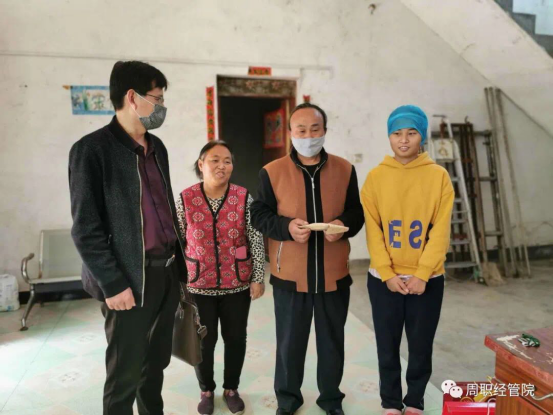 疫情期间我校经济与管理学院19级电子商务专业王晓巧同学经历了一场生死考验,病痛的折磨让这个年轻的生命两天内经历了两次开颅手术。经管学院领导听到这个消息后,迅速组织该院教职工和学生为王晓巧同学捐款,随后院班子成员、辅导员带着大家的爱心远赴驻马店平舆县看望王晓巧同学。