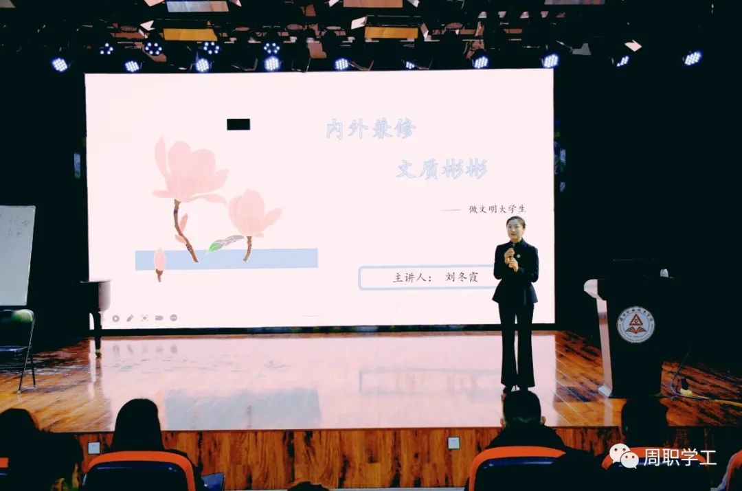 为增强学生的礼仪规范知识,养成礼仪规范习惯,提升文化素质和社交能力,提高大学生的综合素养,在校园里树立文明礼貌的风气,4月7日下午,学生处于在学前与艺术教育学院演播厅举办“内外兼修 文质彬彬”礼仪教育知识讲座。讲座由思政部主任、学生处负责人刘冬霞主讲,各二级院部专职辅导员、学生干部及学生处工作人员现场聆听了讲座。