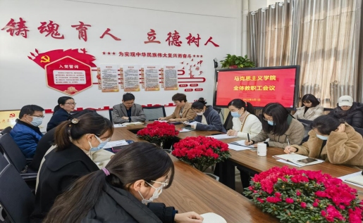 3月1日,马克思主义学院在开元校区行政楼三楼3353会议室召开全体教师会议,马克思主义学院院长贾涛、副院长韩凤梅、教管办主任范文婷、心理指导中心主任常瑞华及全体教师参加会议。会议由副院长韩凤梅主持。