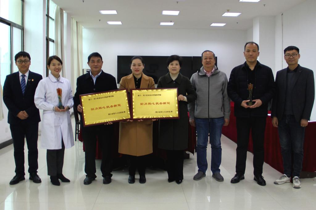 4月4日上午,周口市第六人民医院副院长郭文静一行到我校文昌校区为医学院和护理学院赠匾送杯,致信感谢疫情防控严峻时期挺身而出的我校实习生,院校双方进行了会谈,并举行了赠匾仪式。教务处、医学院、护理学院等相关负责人参加会谈。