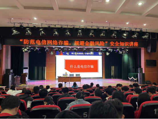 为进一步提高广大师生的反诈意识,增强对电信网络诈骗犯罪的辨别和应对能力,全力打造平安和谐校园,5月24日下午,周口职业技术学院保卫处联合学生处及各二级学院邀请周口市公安局经济开发区分局刑侦大队队长宋东营和太昊路派出所所长赵宝兴到校,开展“防范电信网络诈骗,规避金融风险”防诈知识宣传讲座。