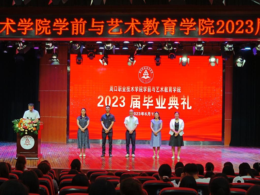 6月15日,周口职业技术学院学前与艺术教育学院在学校励德厅隆重举办2023届毕业典礼。学院领导班子,教研室主任、20级辅导员、优秀教师代表及学生代表参加典礼。典礼由学院党总支书记王春生主持。