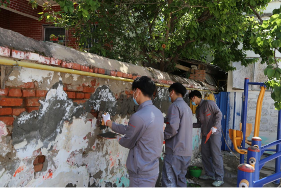 活动中,建筑工程学院师生志愿者顶着炎炎烈日,重新粉刷村里的破旧墙面,志愿者们手拿刷子、滚筒,忙得不亦乐乎,一面面原本斑驳泛黄的墙壁焕然一新。建筑工程学院师生志愿者用专业技能助力美丽乡村建设,获得了三大夫营村干部群众的高度评价。