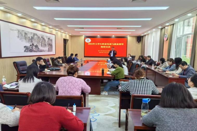 为提升我校《大学生职业发展与就业指导》课程任课教师专业化水平,2024年度师资培训工作于10月19日-20日在行政楼第六会议室举行。本次培训特邀济源大工匠、河南省首批大学生就业指导名师、河南省就业创业工作专家、河南省高校就业创业指导名师工作室负责人、教育部大学生职业规划和国际大学生创新大赛评委、全国高校毕业生基层就业卓越奖获得者济源职业技术学院雷玉梅教授进行授课。我校49位任课教师及招生就业处相关人员参与培训。