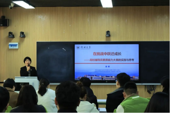 聂娜教授围绕《在挑战中跃迁成长——高校辅导员素质能力大赛的实践与思考》主题,以其深厚的学术功底和丰富的实践经验,深入浅出地剖析了高校辅导员素质能力大赛的重要意义、比赛流程、参赛技巧以及如何在比赛中实现个人素质与能力的全面提升。同时,通过案例分析、模拟演练等形式,让辅导员们亲身体验和学习与学生有效沟通的方式方法,并就提升自身专业能力和综合素质给予指导性建议。