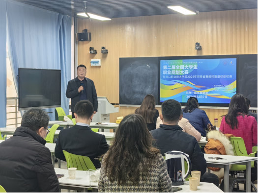 为贯彻落实《河南省教育厅办公室关于印发<第二届全国大学生职业规划大赛2024年河南省赛教师赛道方案>的通知》[教办学〔2024〕357号]精神,进一步提升我校就业指导教师的教学技能和专业水平,12月7日下午,我校在开元校区录播室成功举办第二届就业指导教师教学技能大赛。本次大赛特邀河南省首批就业指导名师雷玉梅担任评委,招生就业处处长许建国,副处长王芳、崔昕等出席活动。