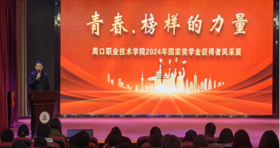我校11位获得国家奖学金的同学围绕学习经验分享、学科竞赛及成长经历等主题逐一上台汇报,与同学共话成长故事、展望美好未来。他们分别从学习情况、获奖情况、竞赛能力、社会实践等方面进行展示,全方位、多角度地彰显了周职学子积极向上、拼搏奋进的青春风采和严谨自律、勤奋努力的优秀品质,诠释了“砺德砺能,志存高远”的校训精神,赢得现场观众的阵阵掌声。