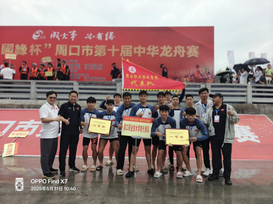 5月31日,2025“国缘杯”周口市第十届龙舟大赛圆满闭幕,我校代表队斩获高校组100米直道赛一等奖和300米直道赛二等奖的可喜成绩。