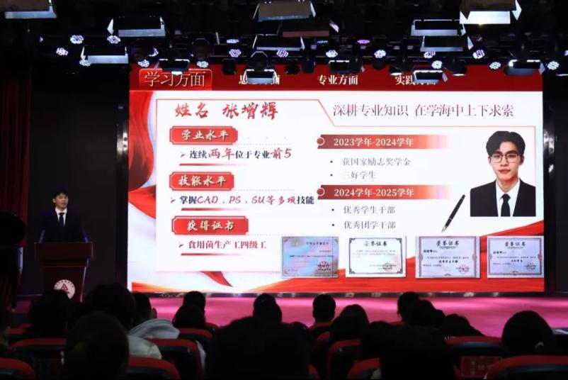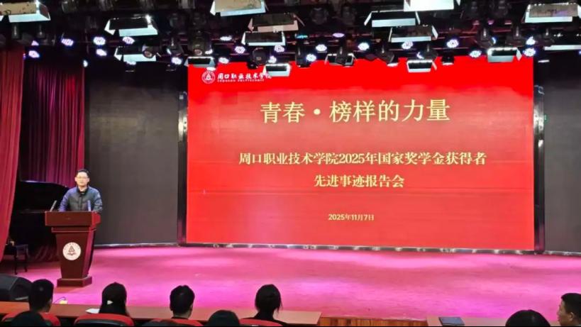 来自不同学院的11名国奖获得者代表进行汇报,他们围绕学习经验、竞赛历程、青春践行等方面分享经历感悟,全方位展现了周职学子“勤学笃行、锐意进取”的精神风貌,诠释了“砺德砺能志存高远”的校训内涵,以自身奋斗故事点燃青春热情,传递成长力量。