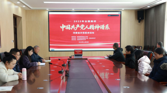 为深入学习贯彻党的二十届四中全会精神,进一步坚定广大青年学生的马克思主义信仰、中国特色社会主义信念和中华民族伟大复兴信心,激发青年学子在强国建设、民族复兴新征程上挺膺担当的行动自觉,12月3日上午,我校在开元校区第六会议室设立分会场,组织师生集中收听收看河南省委教育工委、省教育厅主办的“中国共产党人精神谱系”河南省示范宣讲活动。