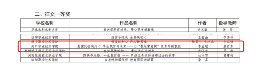 经专家评审、省教育厅关工委审定,我校文化旅游学院指导学生李孟瑶撰写的作品《老骥伏枥映丹心 毕生筑梦向未来——记“教坛常青树”任东升副教授》荣获征文组一等奖。该作品以老教师任东升为采访对象,生动展现出其深厚的人文素养、强烈的责任担当和真挚的育人情怀,是学校将“五老”精神、工匠精神与爱国情怀有机融入“大思政课”教学的生动实践。