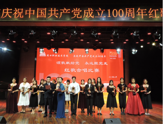为庆祝中国共产党建党100周年,重温党的光辉历程,深入推进党史学习教育,6月15日晚7点,周口职业技术学院学前与艺术教育学院在砺德厅举办周口职业技术学院“颂歌献给党 永远跟党走”红歌合唱比赛。副校长李明臣、李秀萍出席本次大赛,苏奎、高岐奎、刘建新、王国俭和高飞担任此次比赛的评委,共17个代表队参加了比赛,近千名学生现场观看。