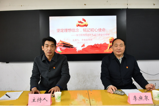为深入学习贯彻党的十九届六中全会精神,11月23日中午一点,在六区一楼6143教室,校党委副书记、工会主席李庶泉教授以“坚定理想信念、铭记初心使命”为题,为信息工程学院师生上了一节生动的党课。信工学院班子成员、教师党员及参加第二十二期入党积极分子培训的60余名学生参加了本次党课学习,党课由信工学院党总支书记李强主持。