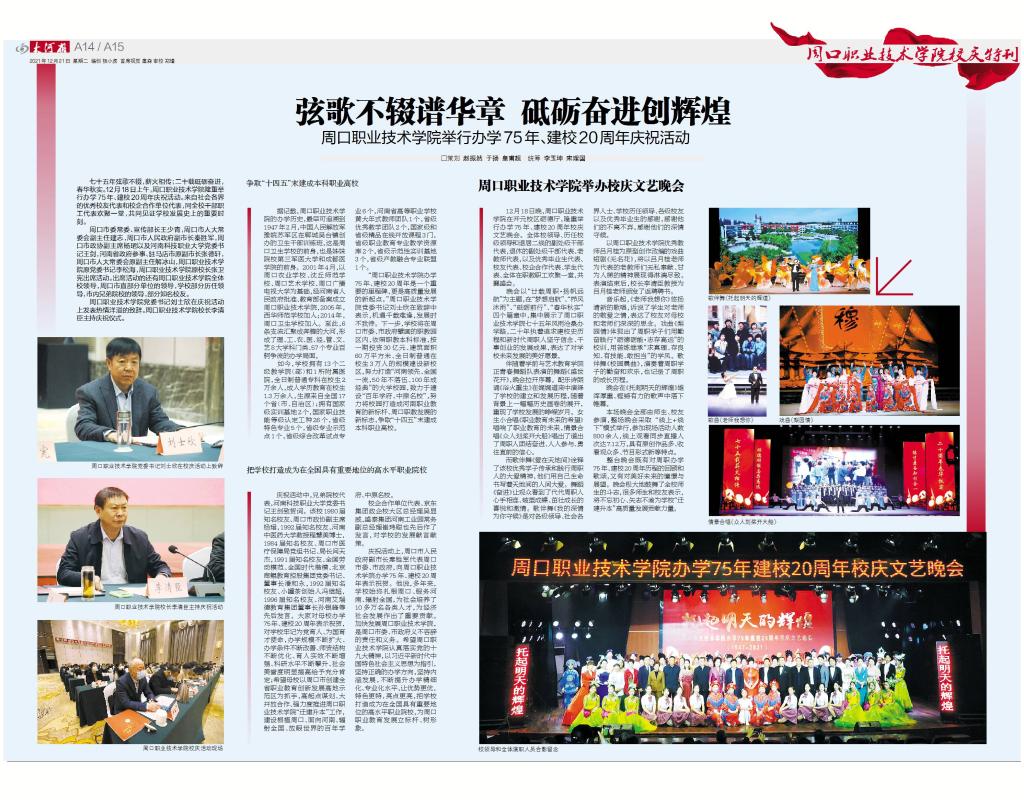 在我校迎来办学75周年、建校20周年之际,省级主流媒体《大河报》推出4个整版篇幅的我校校庆特刊,对我校校庆活动予以全方位宣传报道。