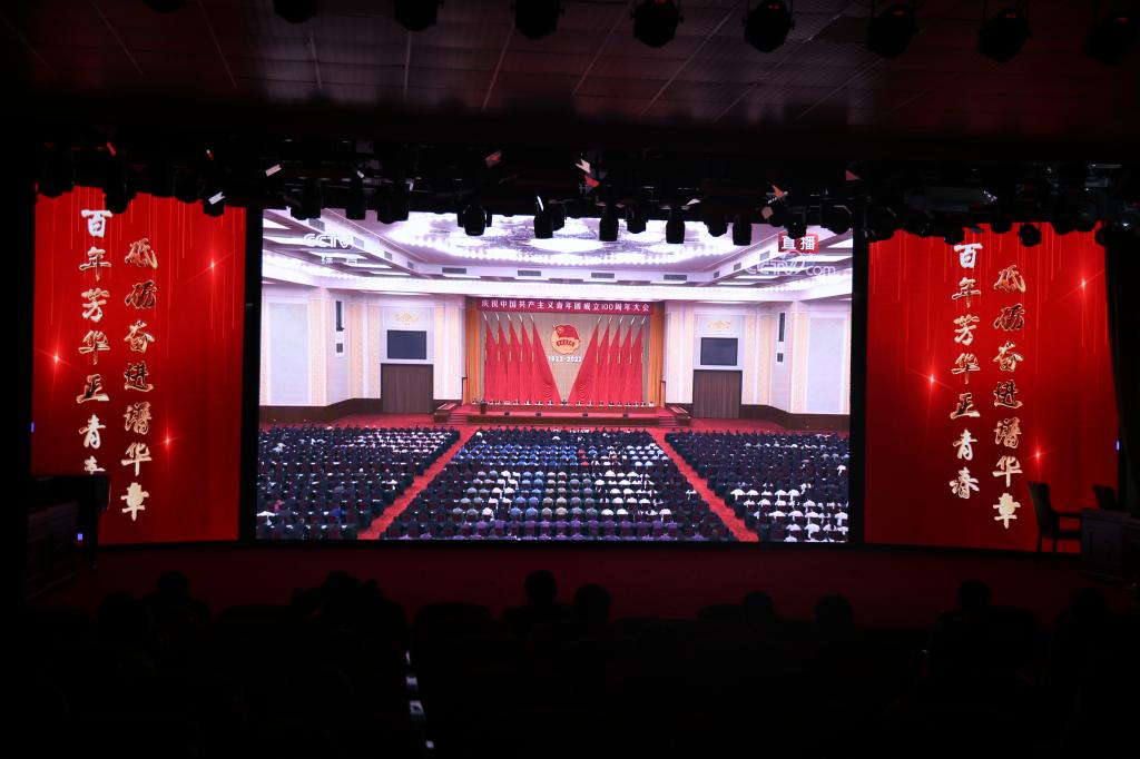 全校师生共同收看团中央关于庆祝中国共产主义青年团成立100周年大会直播。